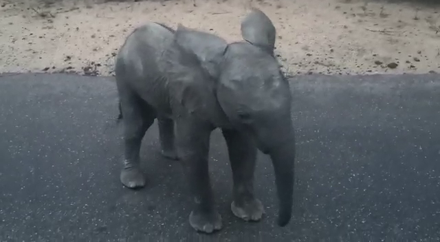 As the clip Donovan sent plays, a sight no one wants to see confronts us. An elephant calf, just a couple of months old, stands next to his vehicle.