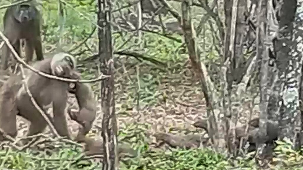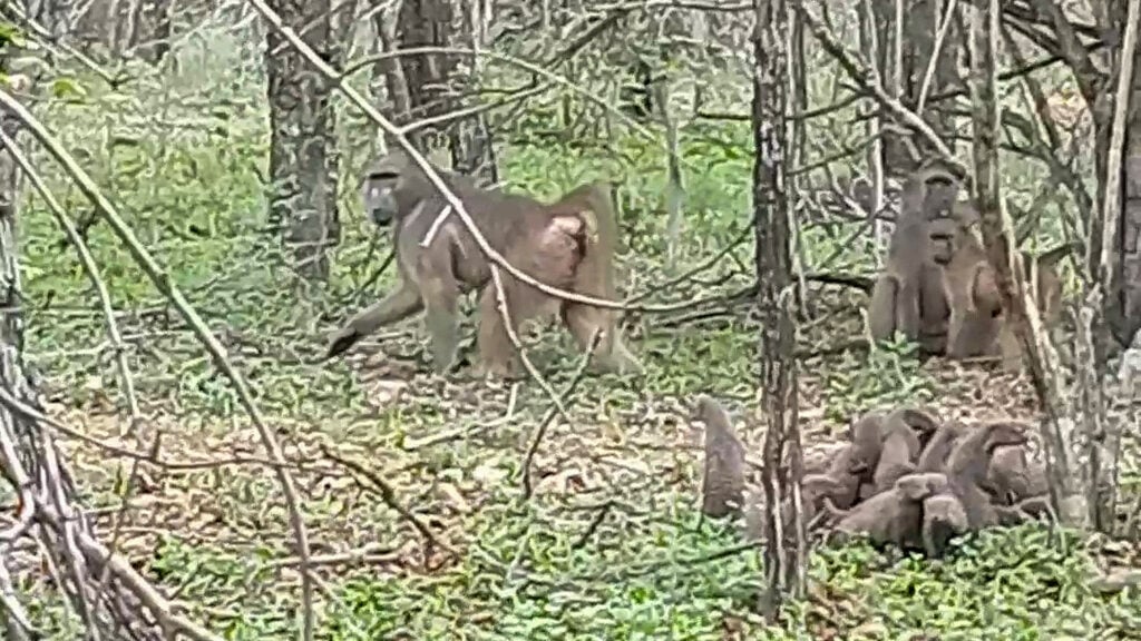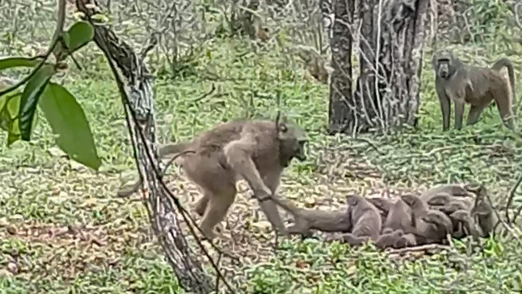 The baboon’s persistence stirred dust, metaphorically and literally, but the family’s speed kept the baby out of reach.