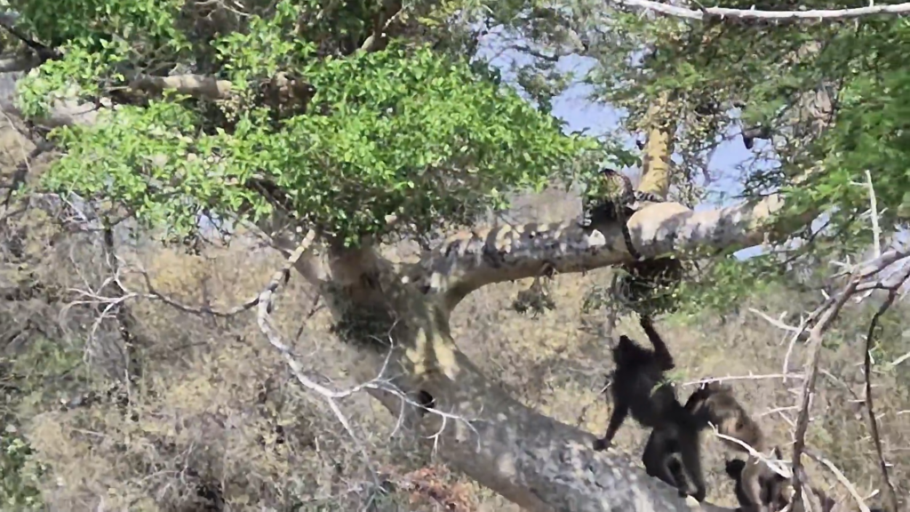 Unfortunately for the leopard, its opponents were more than capable of climbing high enough to meet it in the branches if they wished. The big cat’s usual tactics to stay safe made very little difference in this match up.