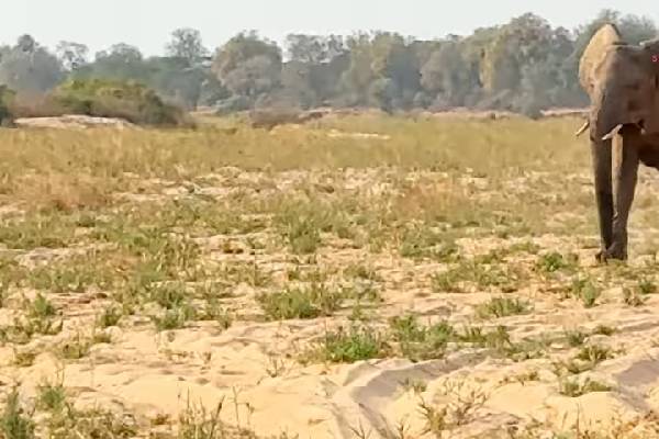 The incredible moment of viewing began when the small elephant spotted a giraffe moving through the bushveld in the distance, and decided to show off a little!