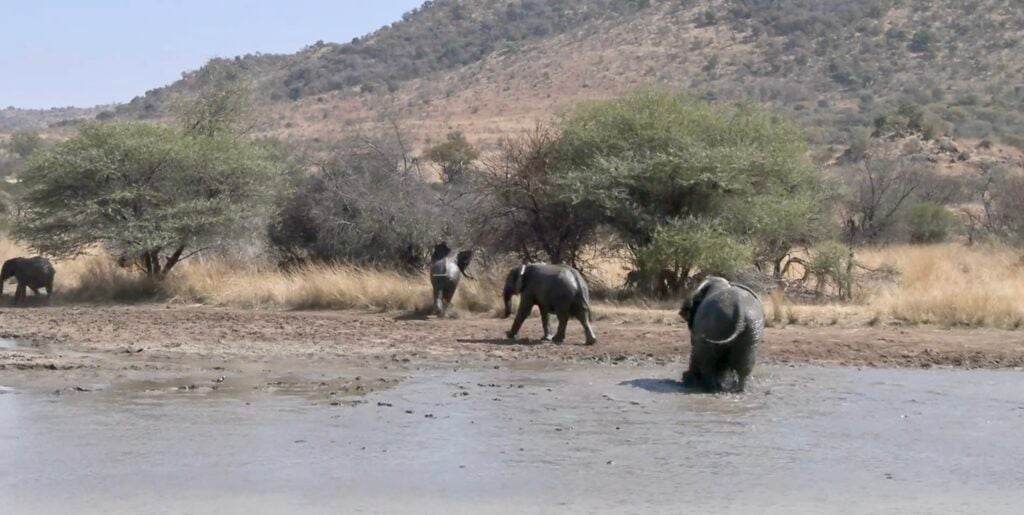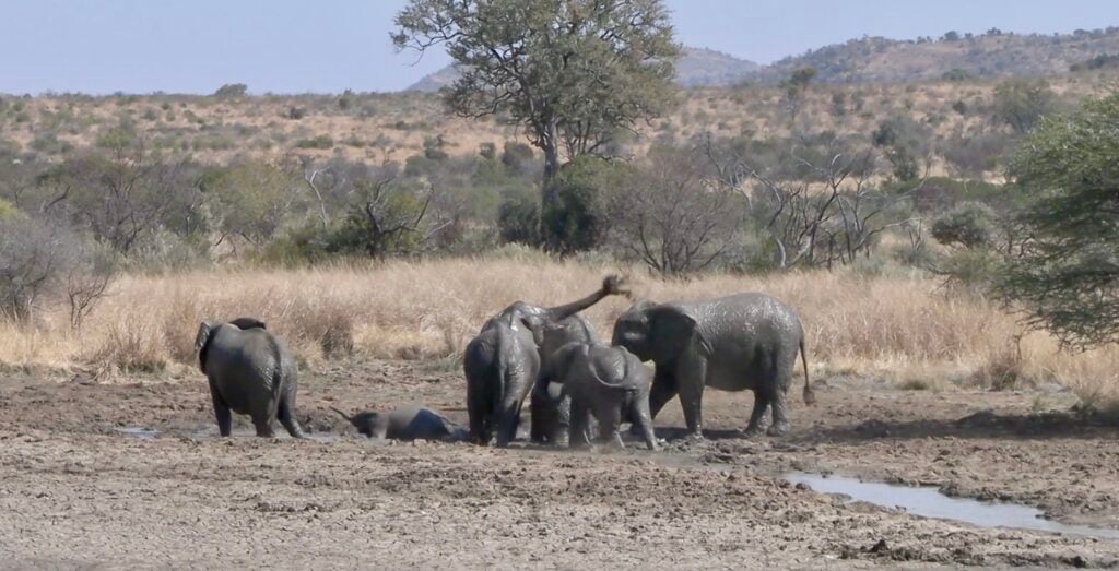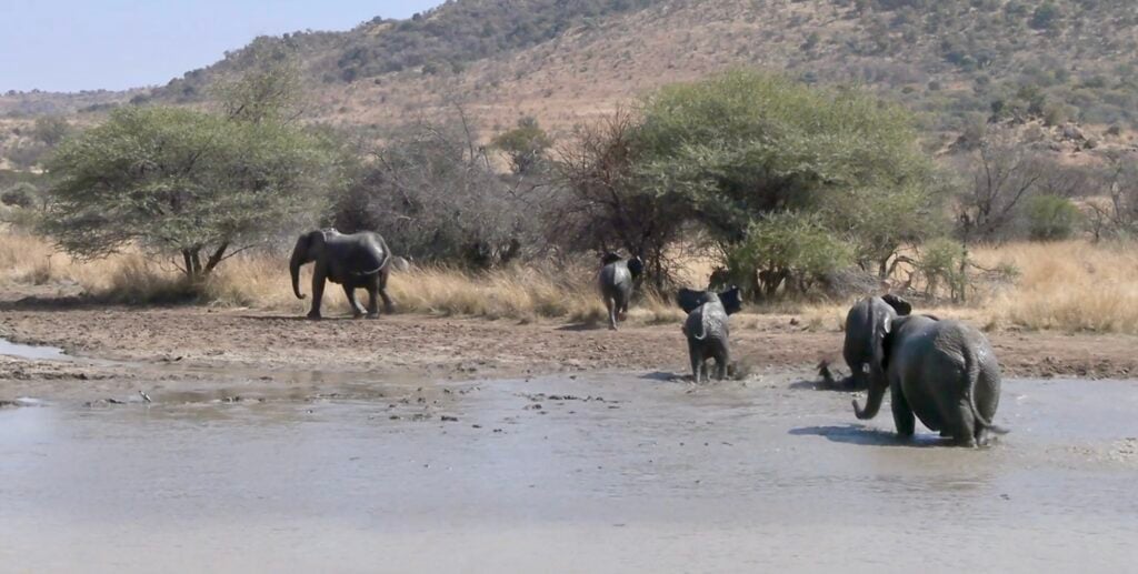 On a beautiful sunny day in Pilanesberg Game Reserve, safari-goer Loretta Weber came across an adorably hilarious sight. She and her group had stopped at Rathlogo Hide, a spot famous for wildlife sightings, especially elephants.