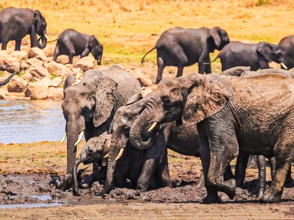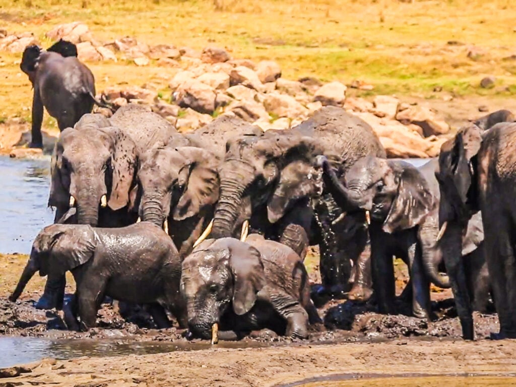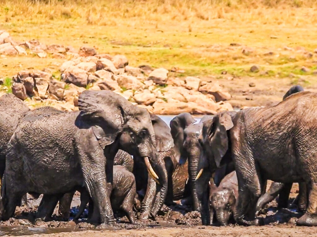 There’s nothing better than a good covering of cool mud to help them feel better, and stop them from overheating. Seeing how enthusiastic the elephants are in the mud makes it clear just how much this means to them.