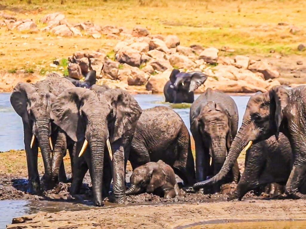 It’s actually quite wholesome to see these enormous creatures so excited about something, and the calf that led them there was the most excited of all. It had done the right thing leading the herd to the mud.