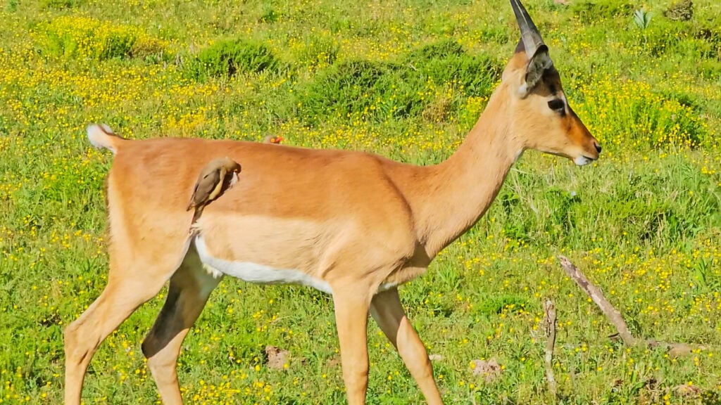 Cameron explained how the oxpecker seemed to be collecting nesting material from the impala.