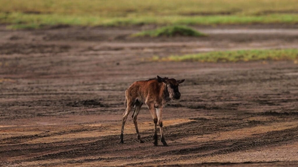 He goes on to explain that during this time, many calves fail to keep up with the ceaseless movements of the herd. And it is just such a scenario that sets the scene for this video.