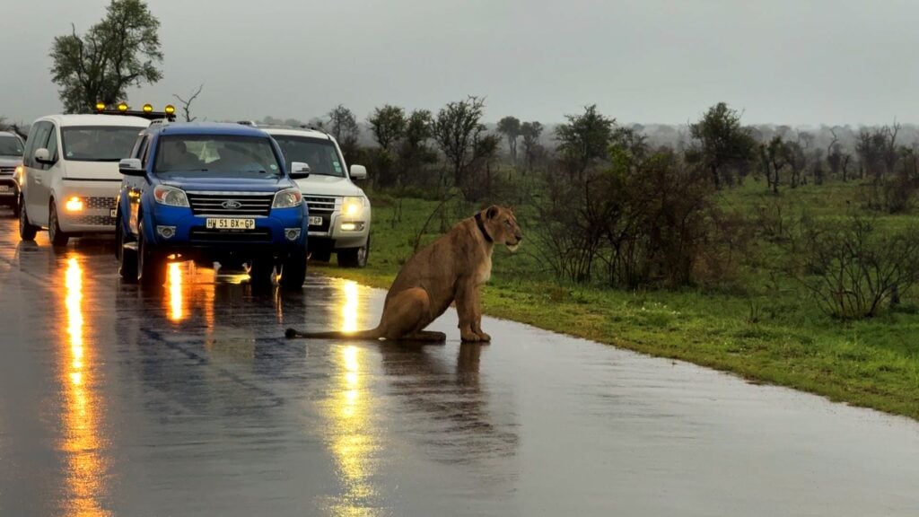 On a rainy late Sunday afternoon near Satara, safari-goer Lizaan Schlesinger found herself in the middle of a scene that laid bare both the beauty and brutality of life in the wild. “We arrived at 18:00, and the hunt started at 18:06,” Lizaan shared. “It was a matter of being at the right place at the right time.”