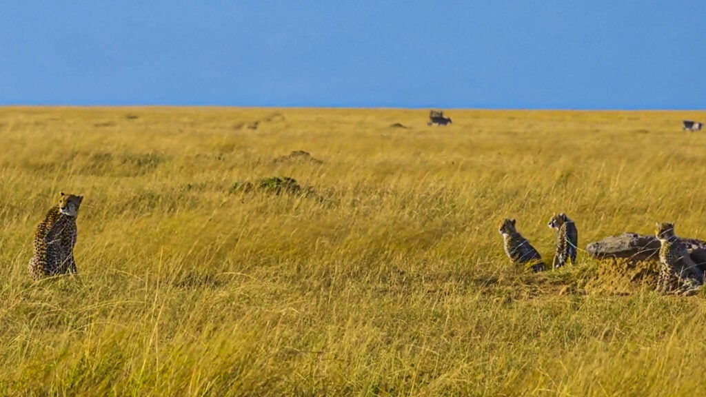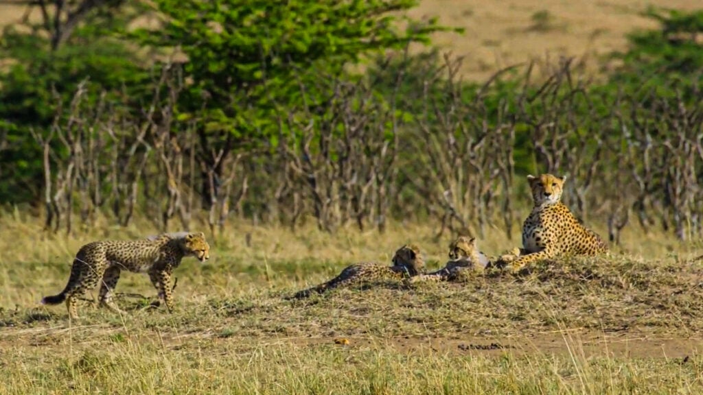 The whole time this cheetah mom was surveying their surroundings, she needed to keep these two priorities evenly balanced. It looked safe, and that meant she could dedicate her time to hunting, and making sure her cubs got a good meal.