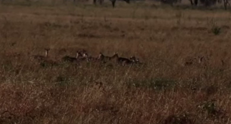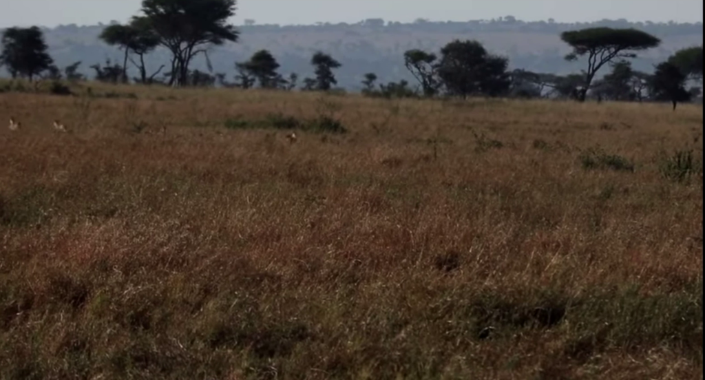 Meanwhile, as they get further away from Thijs, it is hard to see the cheetah. At times, only the occasional sight of its white-tipped tail gives it away.