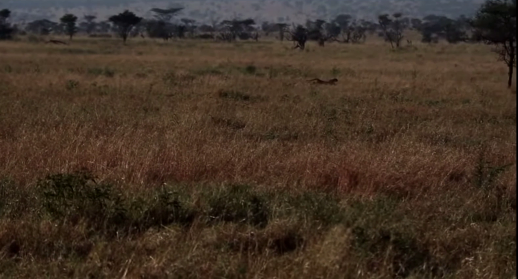 However, the cheetah is not easily fooled and selects its target. Like a meat-seeking missile, it streaks across the grassy plains, gradually shrinking the distance between it and its prey.