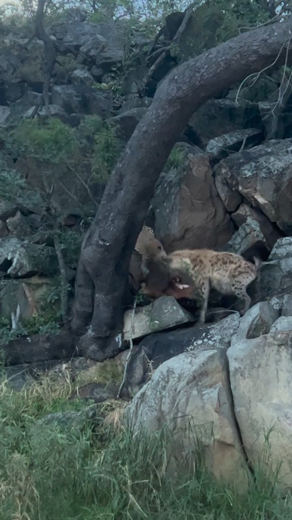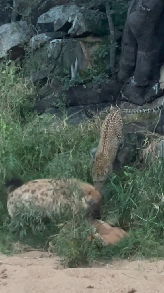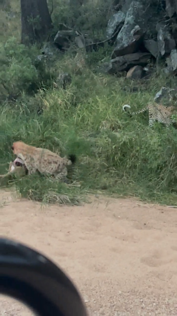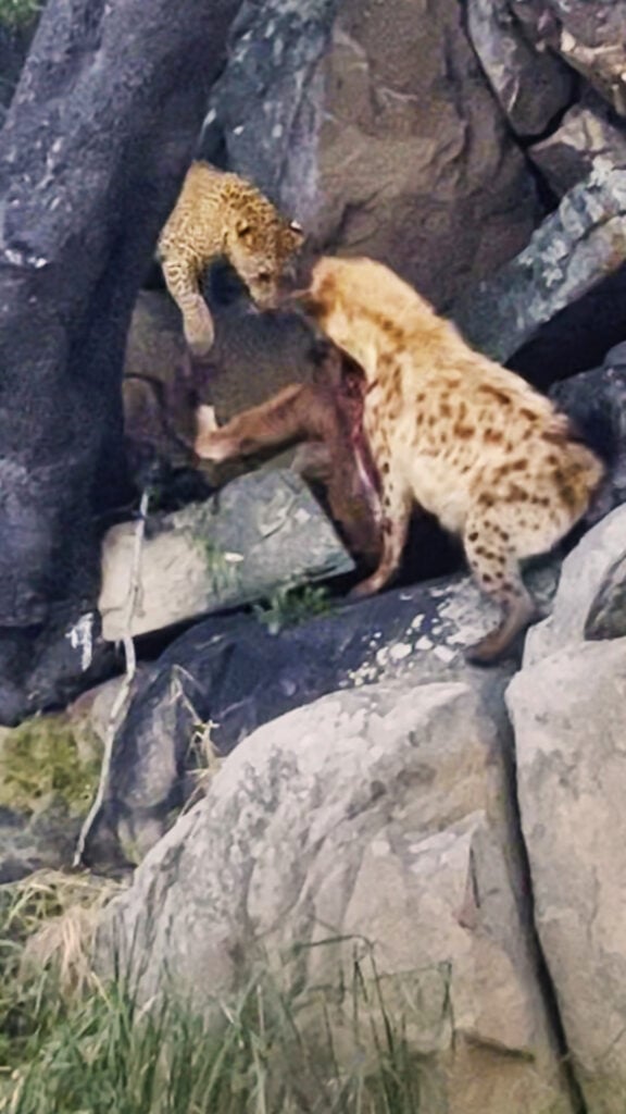 On inspecting the commotion, it became evident that a leopard and a hyena were caught in a tussle.