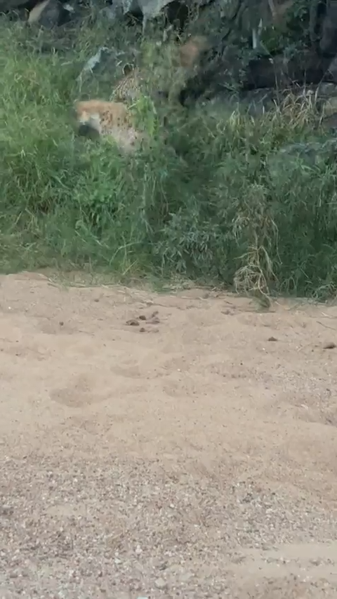 Round 3 of leopard vs hyena again ended with the hyena having the upper hand. The leopard moved off to the side, appearing to lick at its wounds.