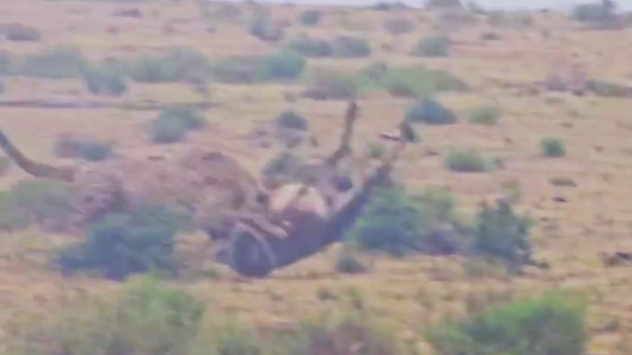 The cheetah tried using its weight to pull the antelope down to the ground. However, even though the cat had embedded both its fangs and claws in its prey, the antelope refused to fall.