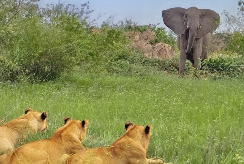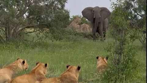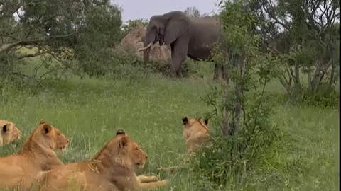 The elephant hadn’t taken much more than a step before the big cats scattered. A rampaging elephant is nothing to scoff at, and these lionesses were trying to relax after a long day, not get into a fight that they would likely lose.
