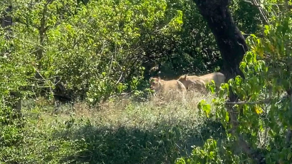 Fortunately for these startled lionesses, they managed to get out of harm’s way.