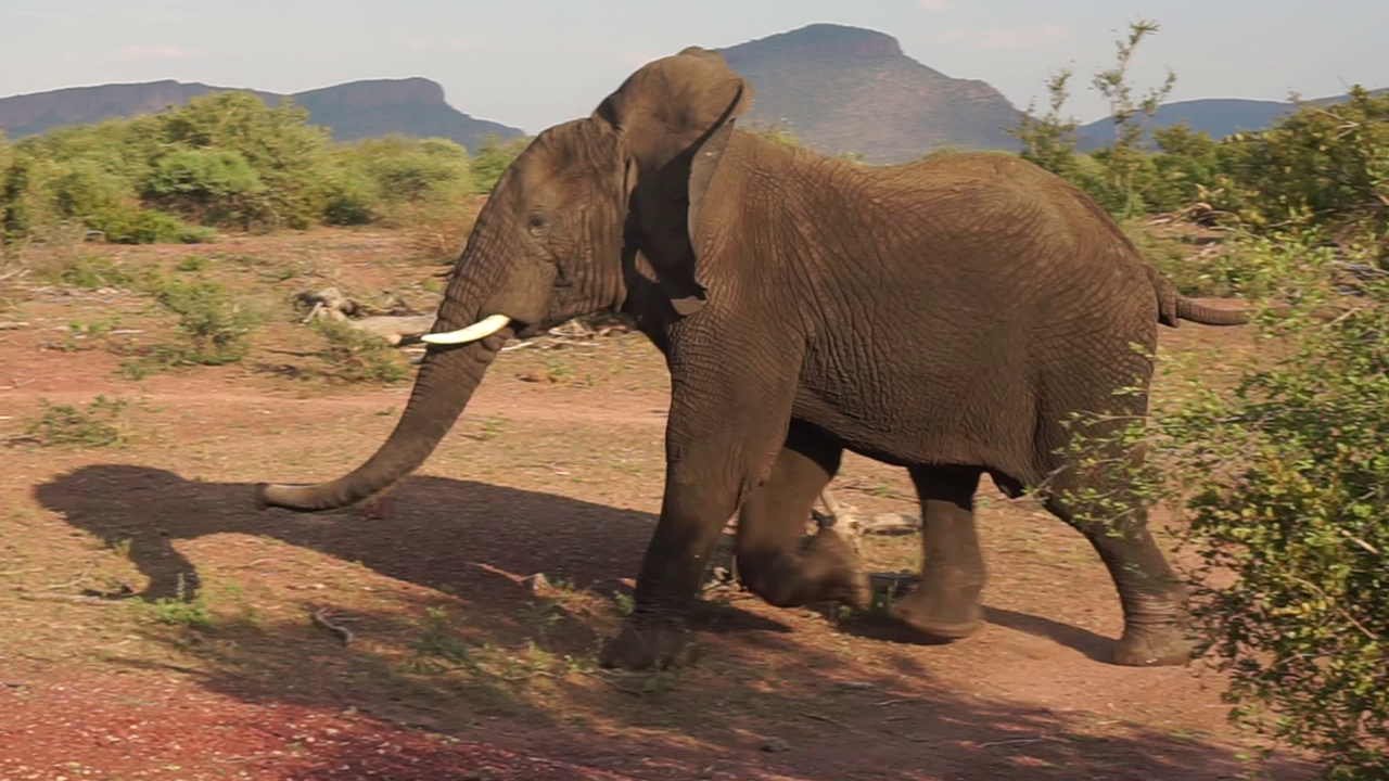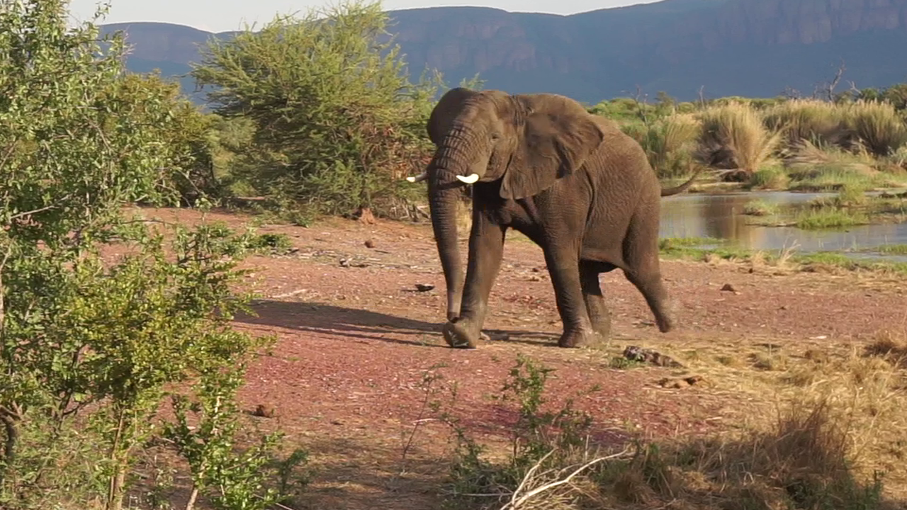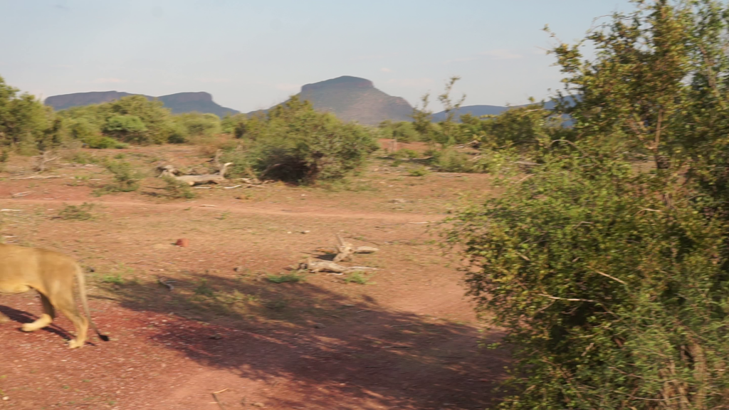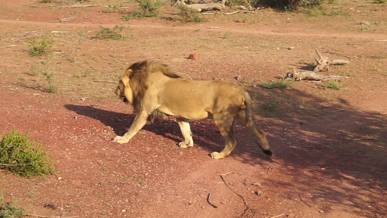 As Ties’s video begins, we encounter a beautiful sight. A mature male lion strides across the iron-rich red earth of northeastern South Africa.