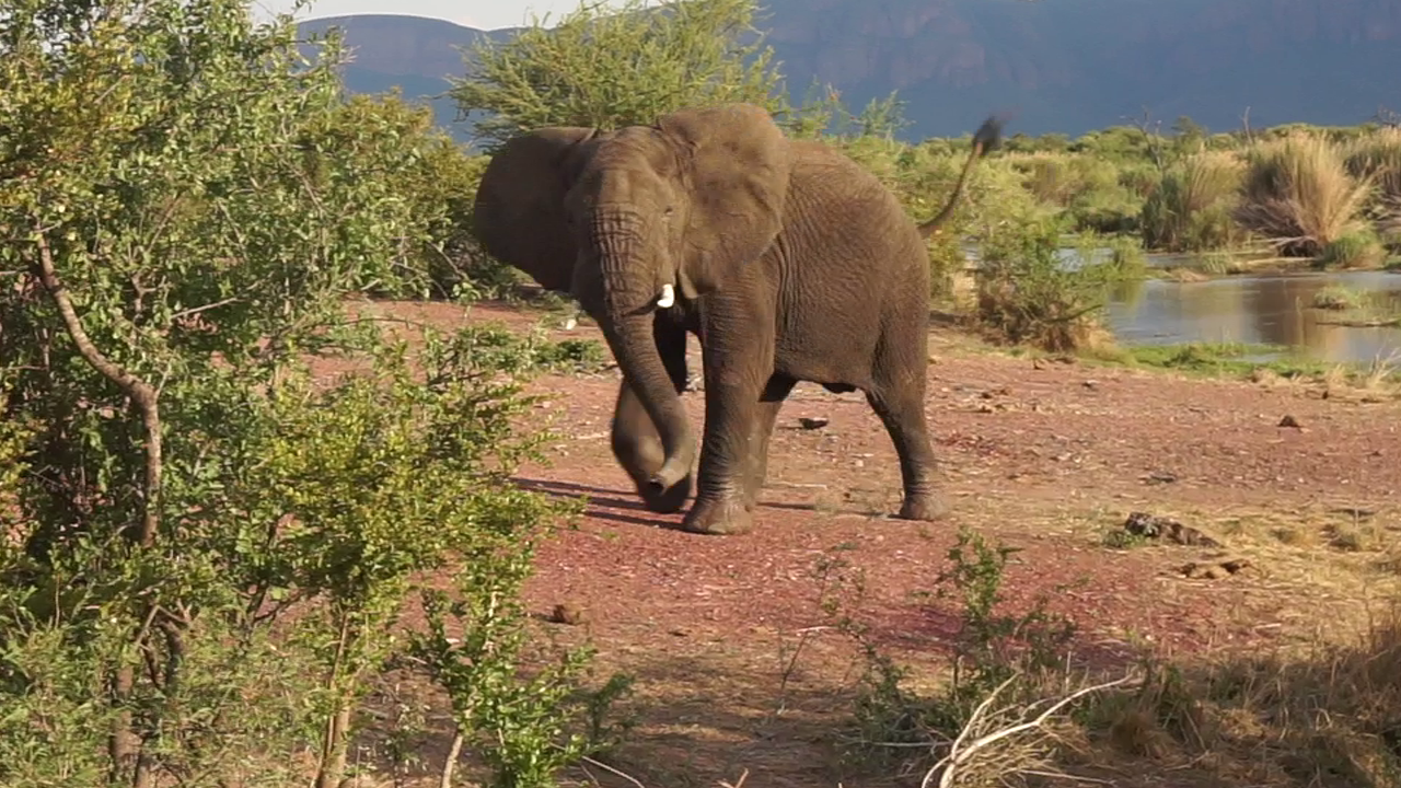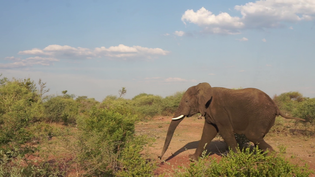 Accordingly, as the bull follows the lion into the dense bush, he trumpets loudly. By doing so, he levels up the threat he is communicating.
