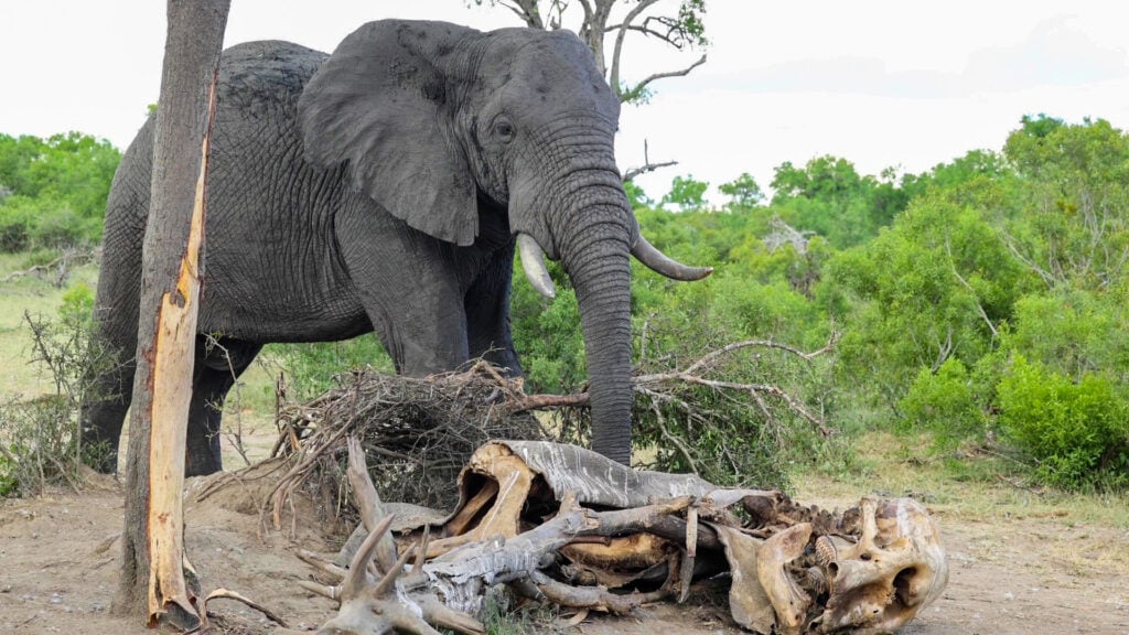 This elephant’s behaviour alongside the carcass of a deceased elephant was typical of the species.