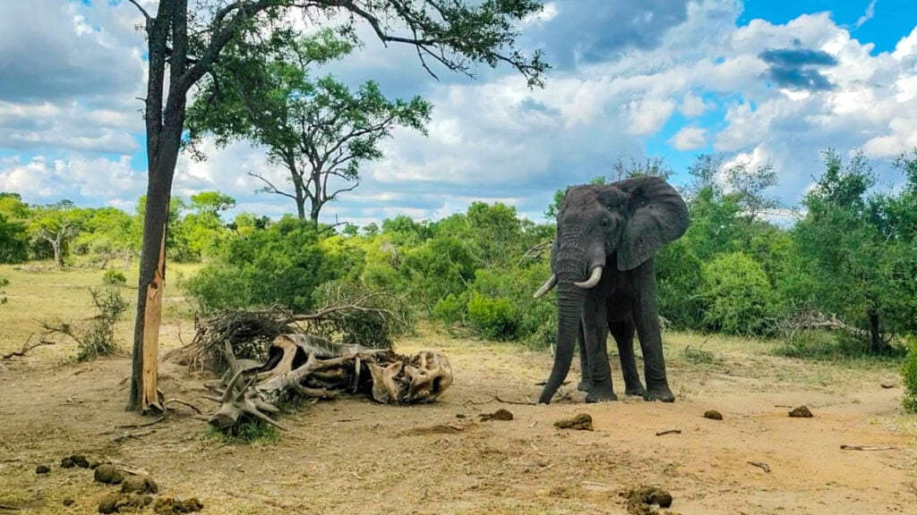 The elephant lingered around its friends carcass, which is also typical behaviour shown by elephants in the event of death.
