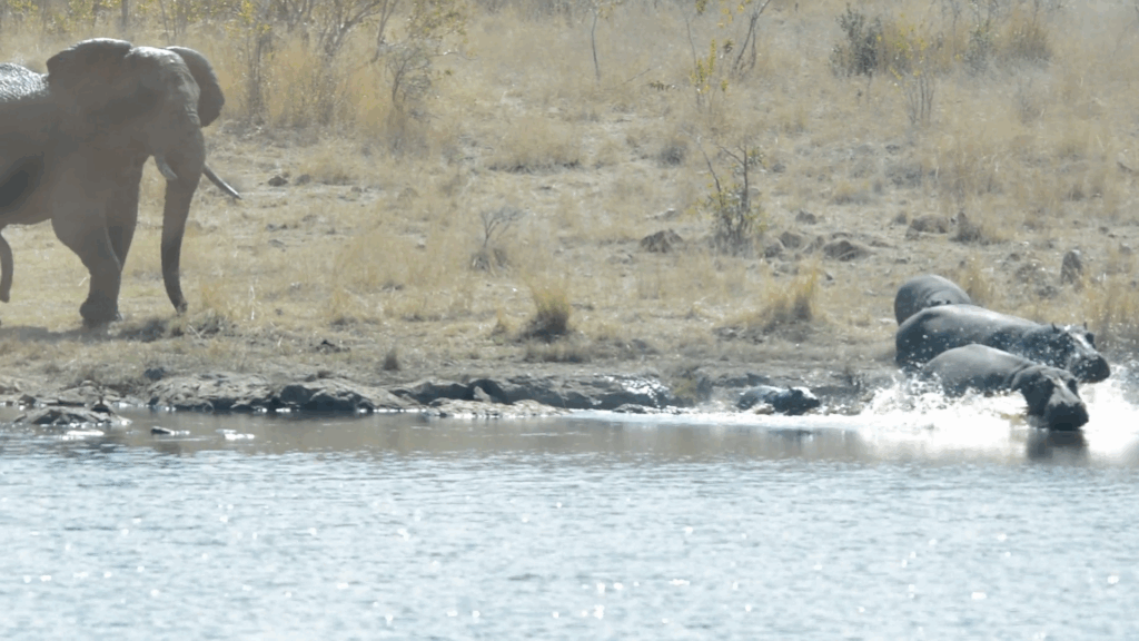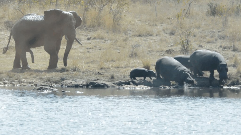 Exactly why this elephant had decided to force these hippos back into the water is unknown. Elephants aren’t typically territorial, and the hippos weren’t being aggressive of antagonistic in any way.