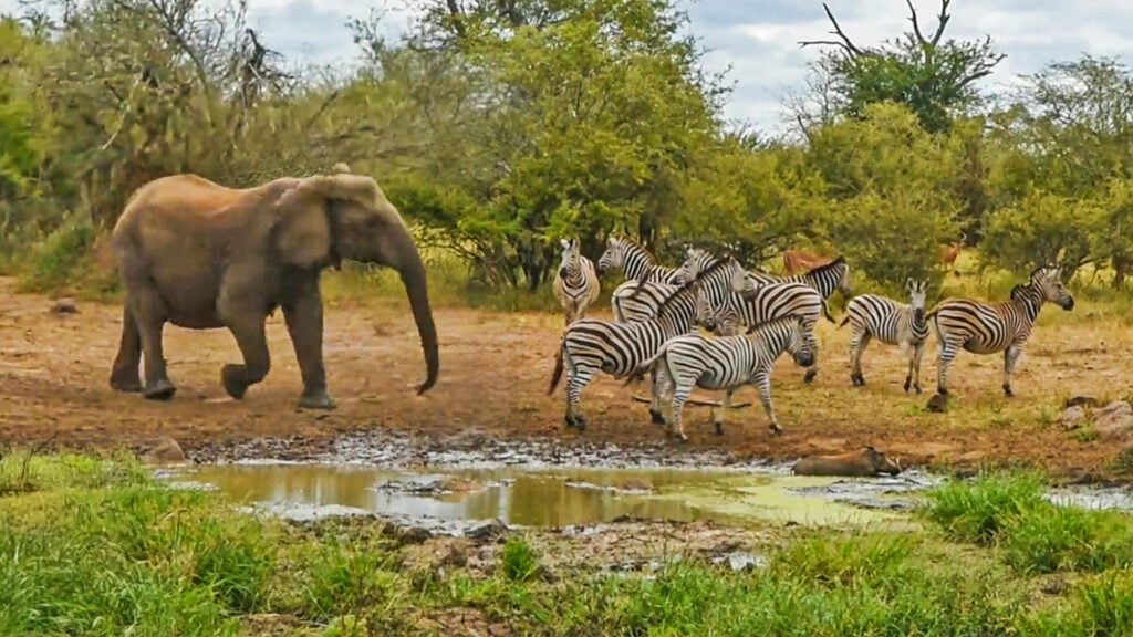 A more tolerant, shared interaction may have unfolded if the waterhole had been larger or plentiful. In tight spaces with scarce water, however, elephants prioritize their herd’s needs and use their size and presence to displace smaller species.