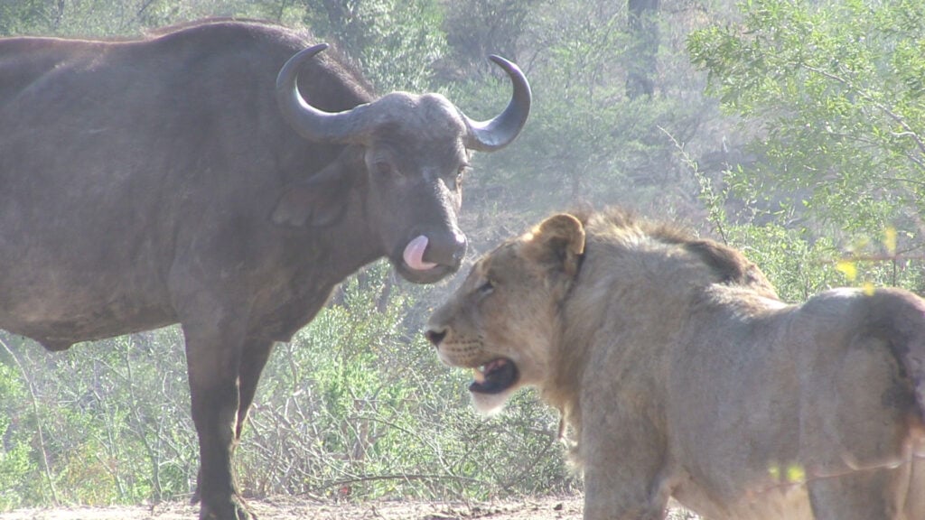 Due to their size, buffalo can be difficult prey for lions to take down, even if there are multiple big cats. With so much strength, lions can sometimes struggle to bring buffalo down to the ground where they can dispatch of them more easily.