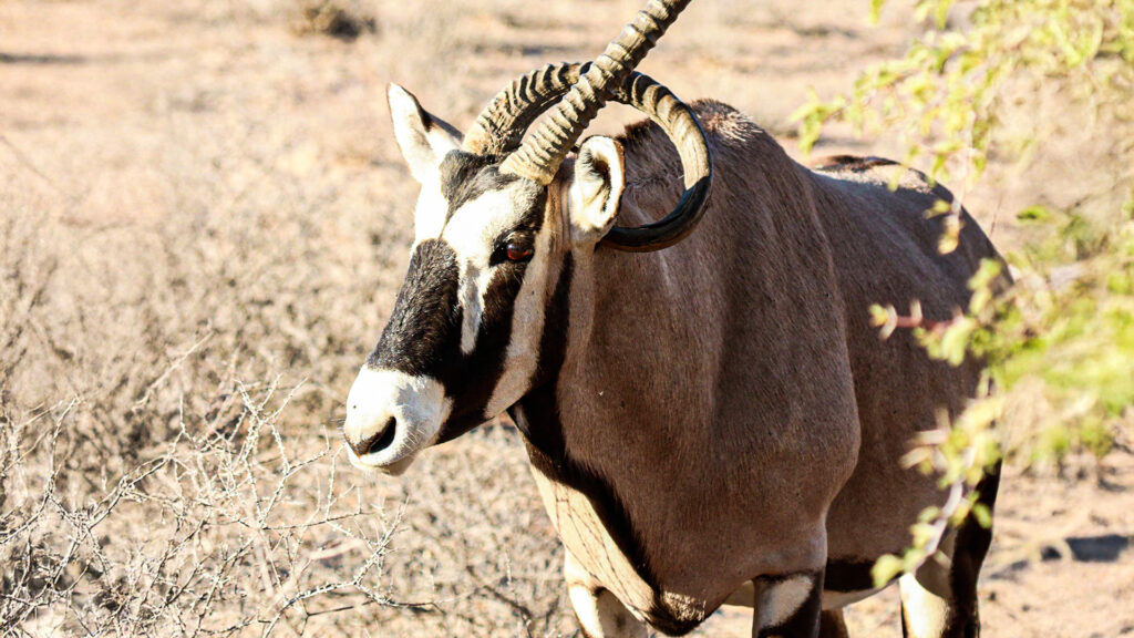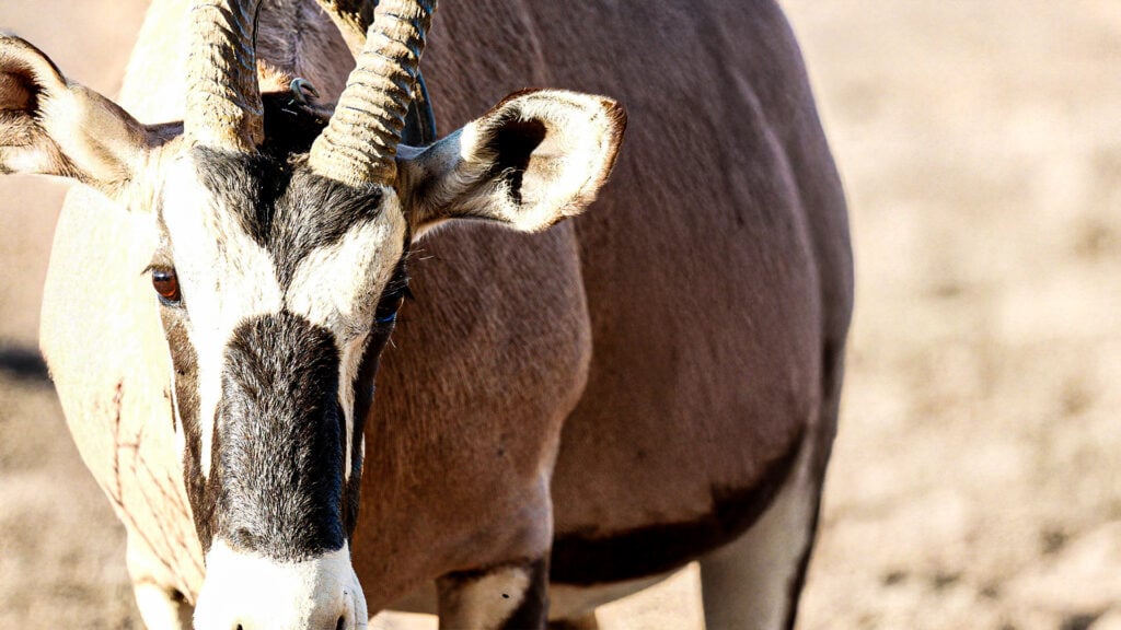 After a few minutes of waiting, a gemsbok approached the water and at first glance, it seemed no different from any other of its kind.
