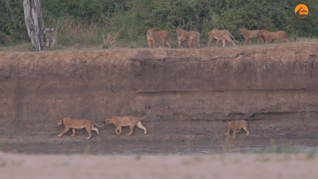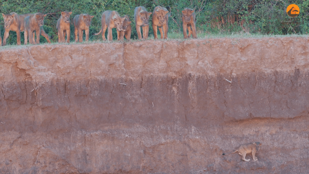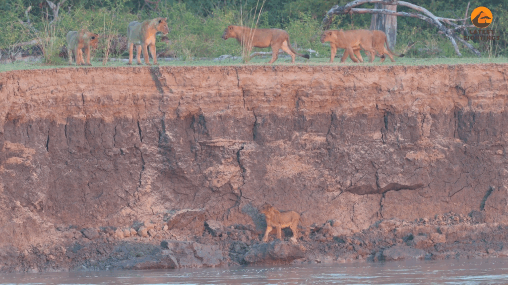 There didn’t appear to be any immediate danger, but the majority of the adult lions had no way to join the two cubs at the edge of the water, and with only a small number of larger lions for defense, the poor cubs were vulnerable.