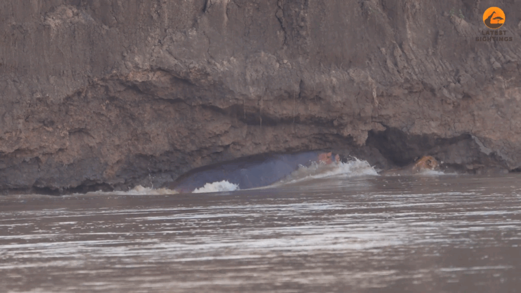 Exactly what happened to the rest of the group that got trapped at the bottom of the cliff was unknown, but the hippos eventually managed to isolate one young lion, and harry it across the shore.
