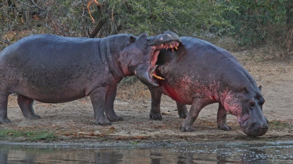 It’s no secret that hippos are highly territorial. This is especially evident in and near water, which is the centre of their survival and social life.