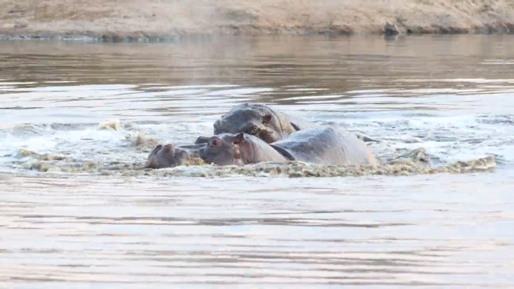 These two hippos made a beeline for one another. It was clear that the water wasn’t big enough for the two of them, and in their thinking, one of them had to go!