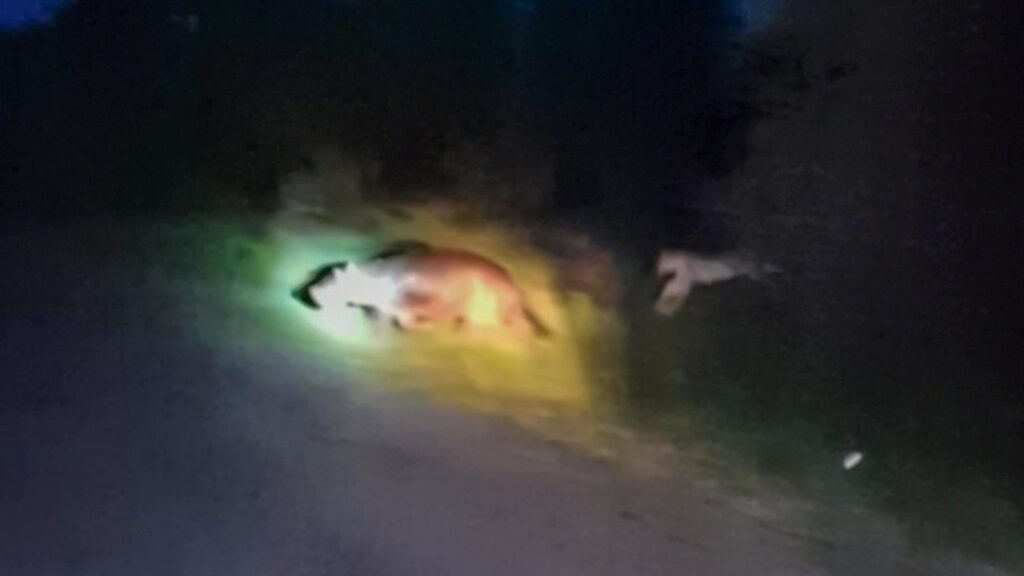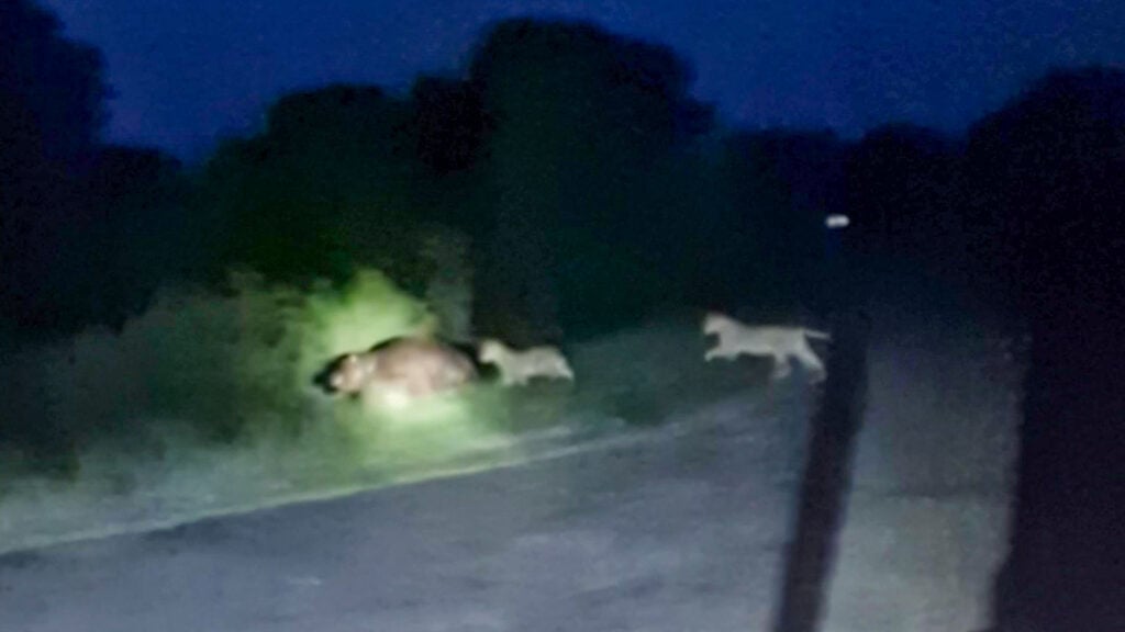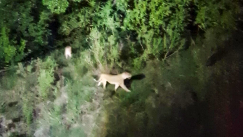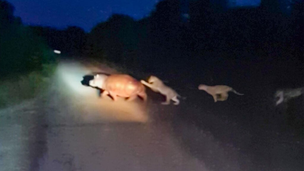 The vehicle didn’t let up. It began to drive forward in pursuit of the hippo and lionesses, and flashlights swept the shadows trying to locate the targets.