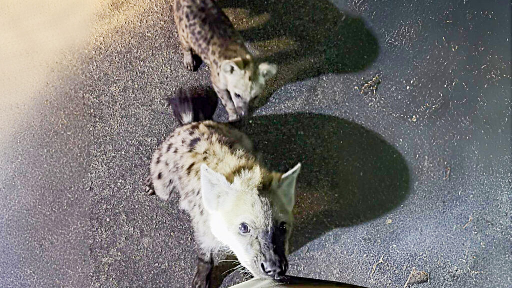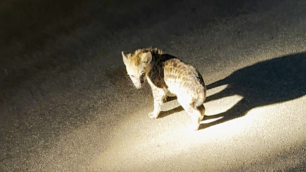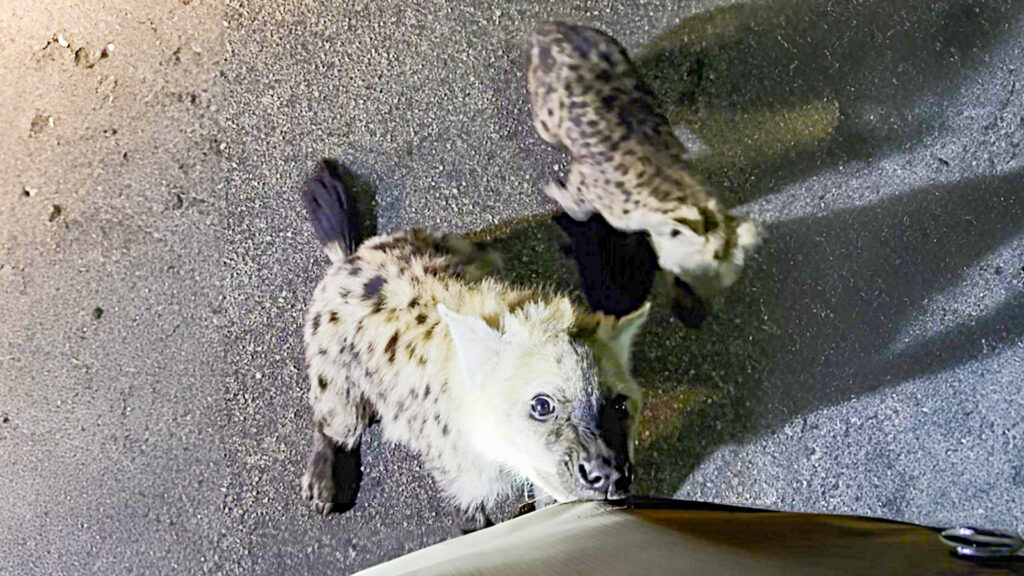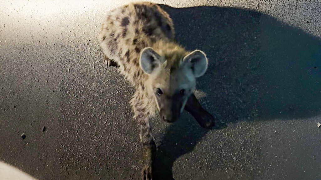 Under the cover of darkness, a couple of flashlights illuminated small portions of the bush. To everyone’s delight, some spotted hyenas approached the safari vehicle with what seemed like cautious interest.