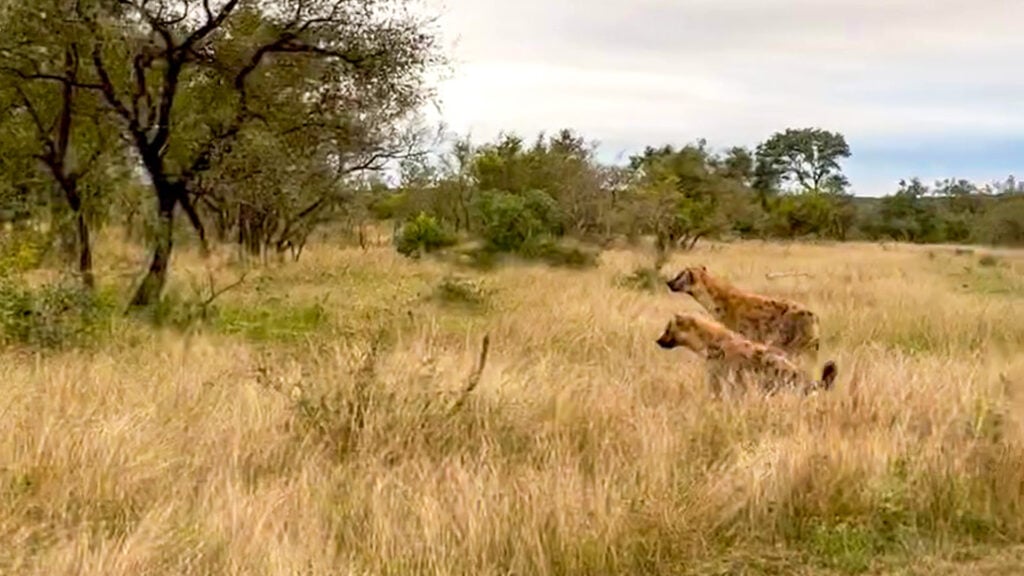 Behind them, the second hyena had already made its decision. It drifted backwards into the grass, subtly disengaging from the potential hunt.