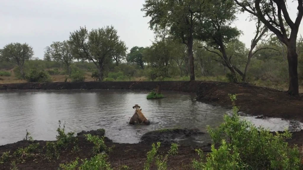 In this incredible sighting, filmed by Jonathan McCormick in the Sabi Sands Game Reserve, the screaming of a kudu cow added to the heartbreaking and dramatic action, when some hyena followed a kudu into the shallow waters of a waterhole.