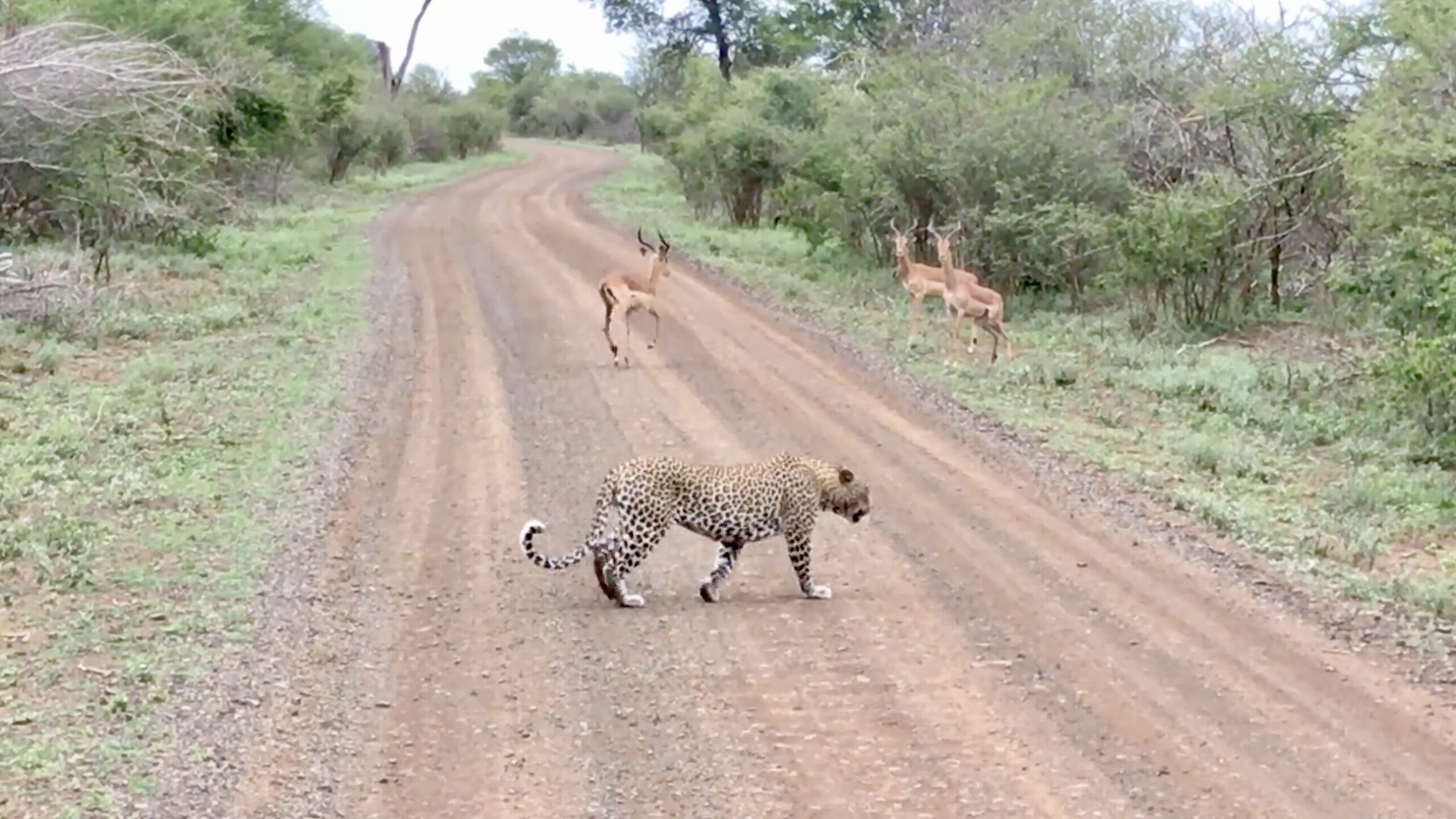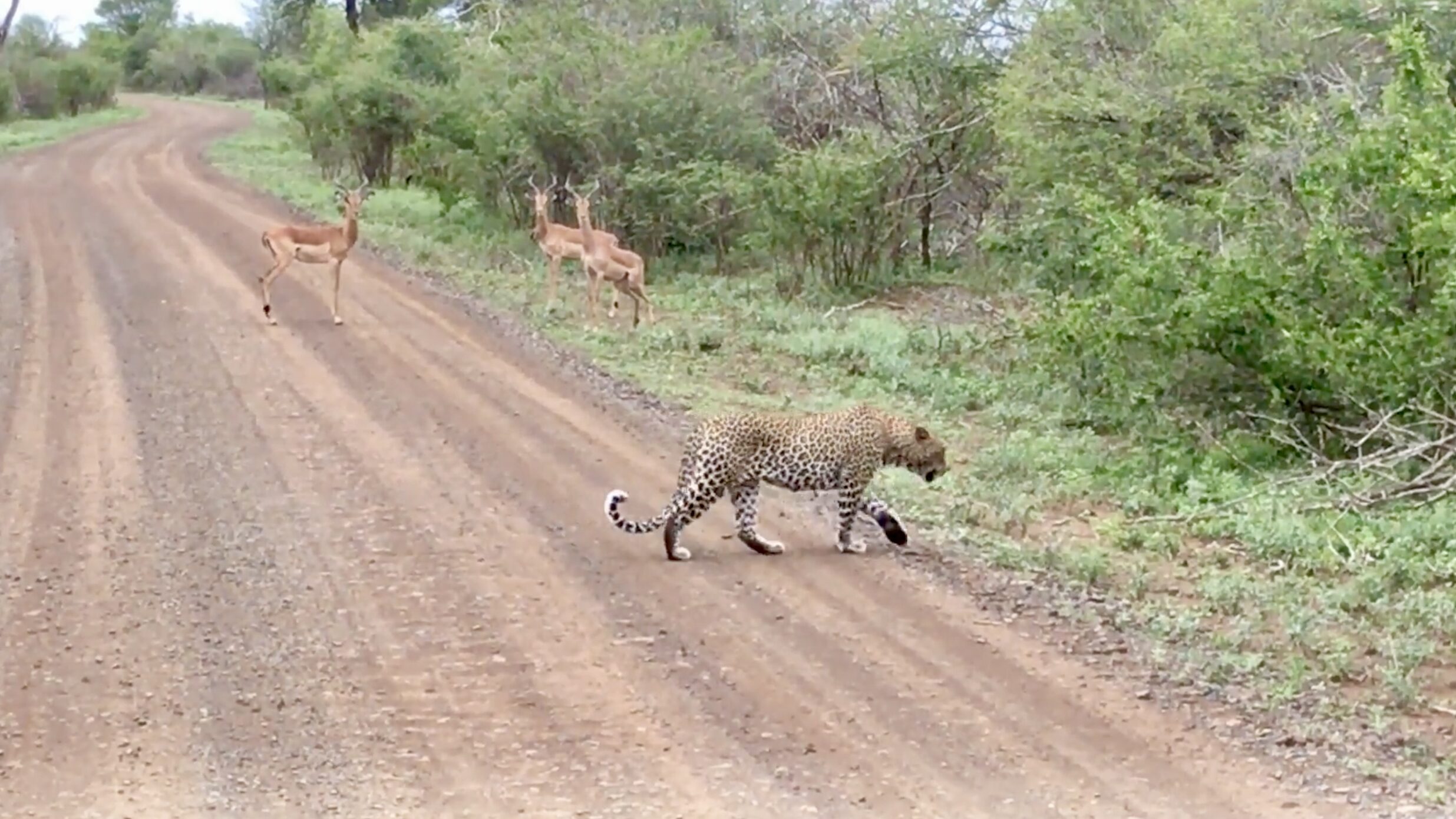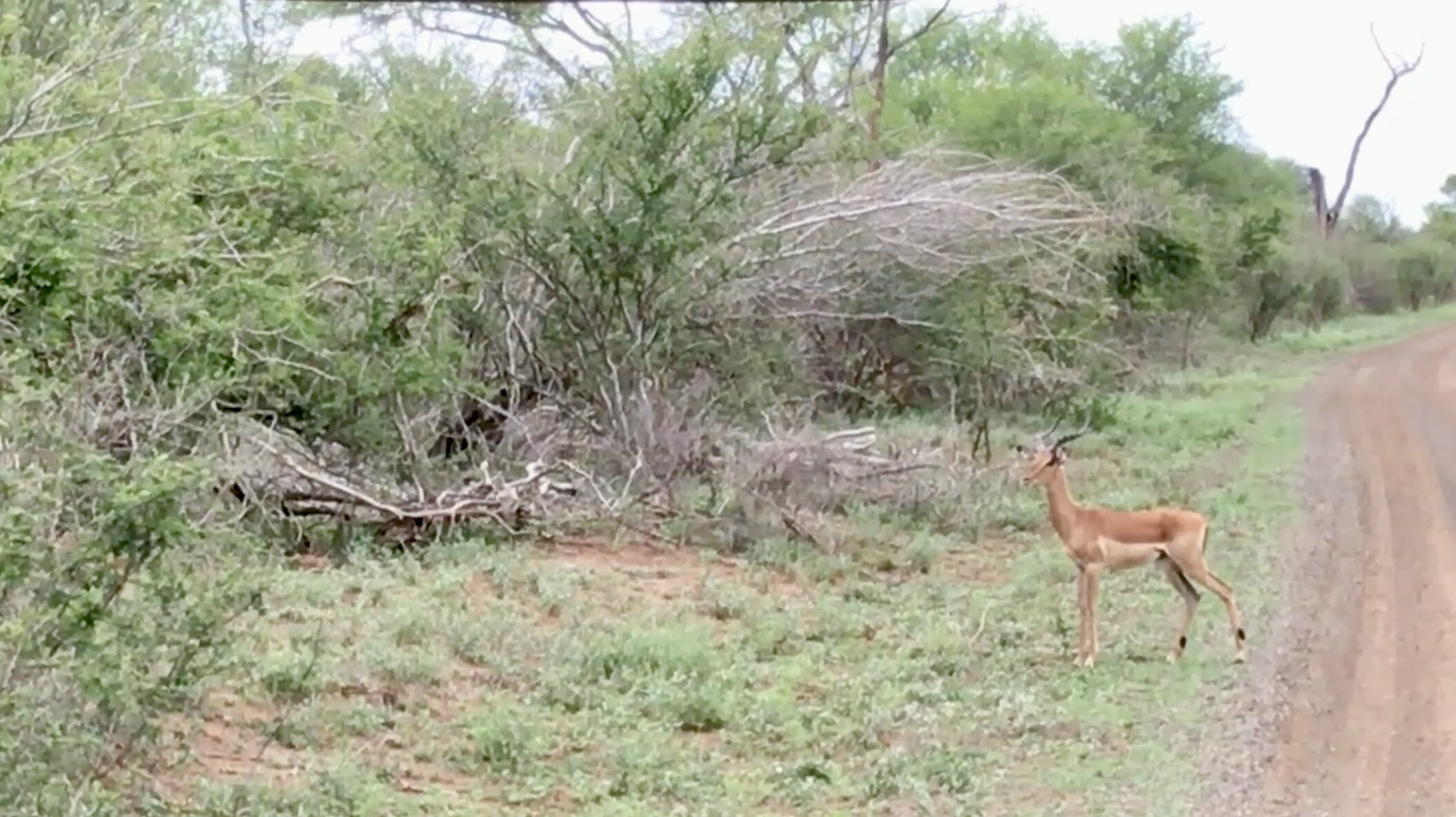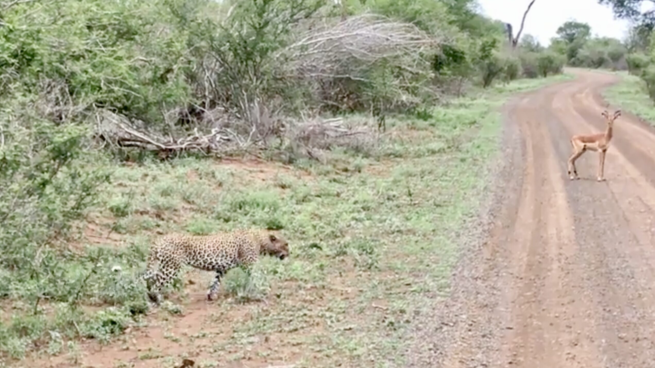 On a quiet day in Kruger National Park, safari-goer Gaurav Mishra captured a brief but tense interaction between predator and prey. His video begins with an impala standing rigidly in the middle of a dirt road, ears pricked, and muscles taut.