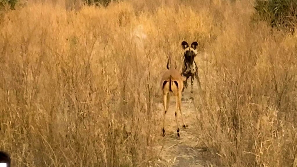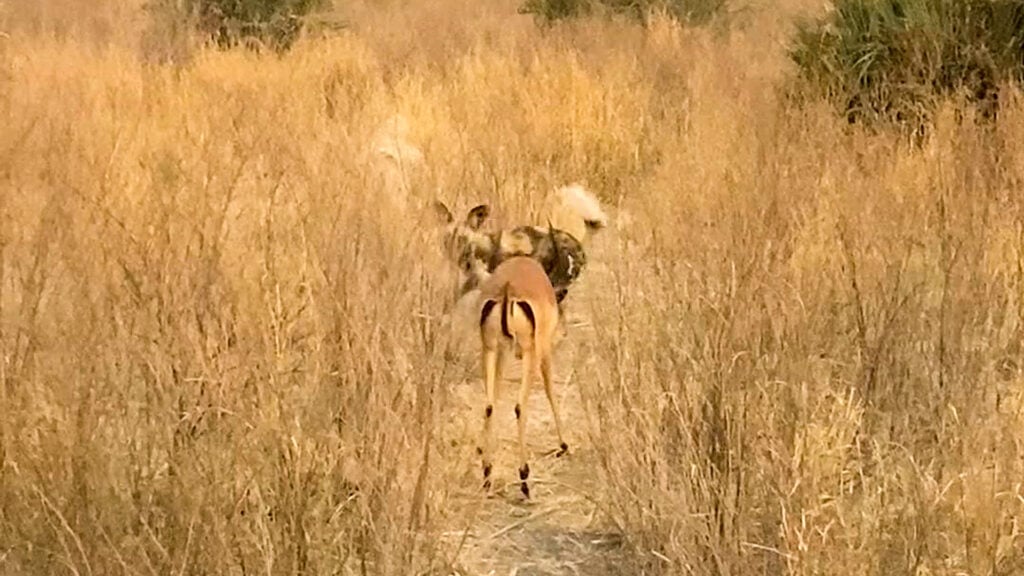 Said Johan: “Eventually the male impala decided to make a run for it and was taken down by the wild dog.”