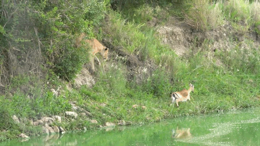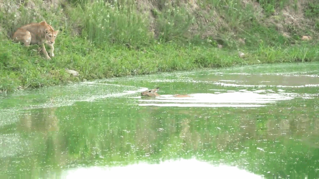 It just needed the time to get back onto land and start running, and with the lion nowhere in sight, this was the best opportunity it was going to have to survive.