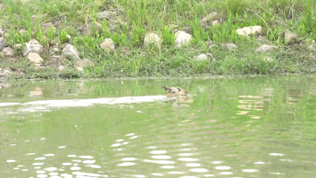 The shallow water was difficult for it to swim in, and several times it pushed itself off the bank, back into the relative safety of the water. Sometimes other animals dive into the water to cool off after a long day, or as an opportunity to relax.