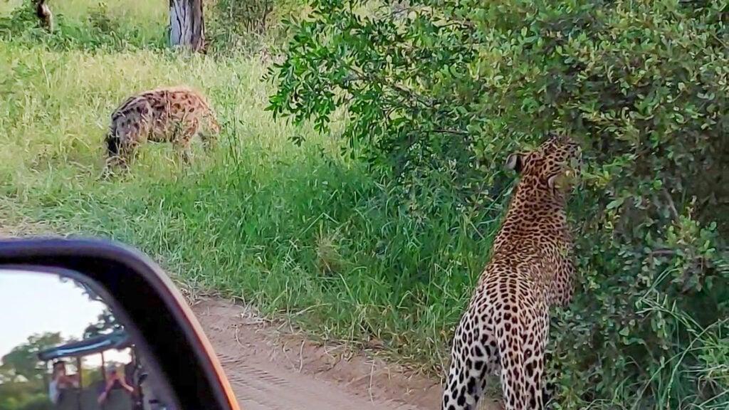 Hyenas and leopards are long-standing competitors in the African bush. They often clash over kills, territory, and opportunity.