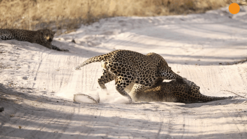 And it is just such an interaction that we witness in this brutal video. A mating pair of leopards has caught a young male trespassing.