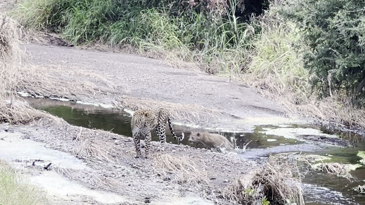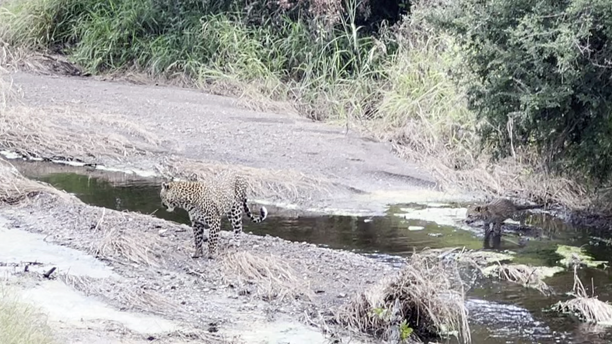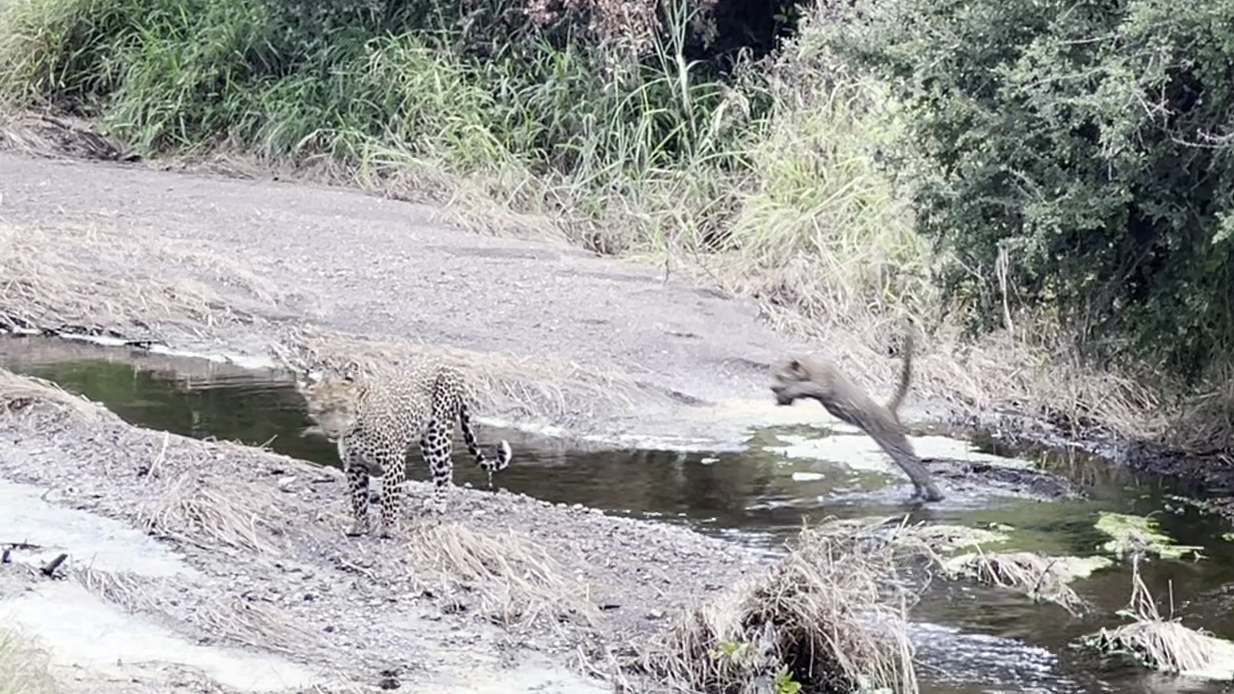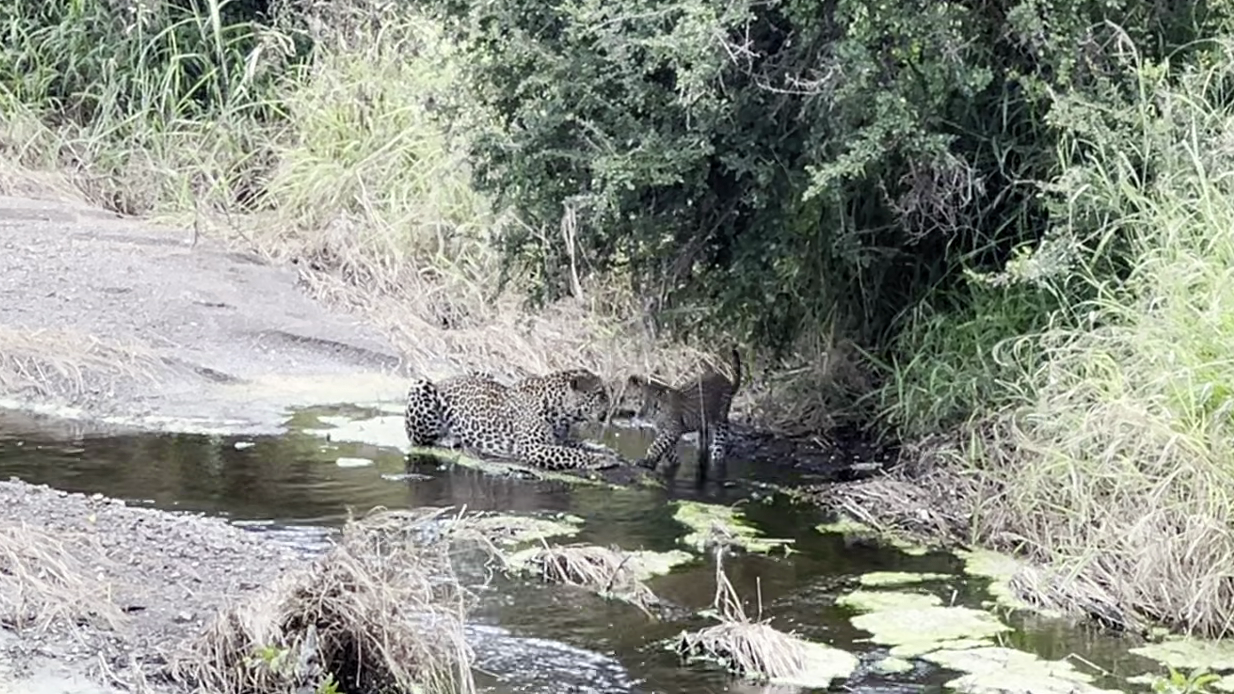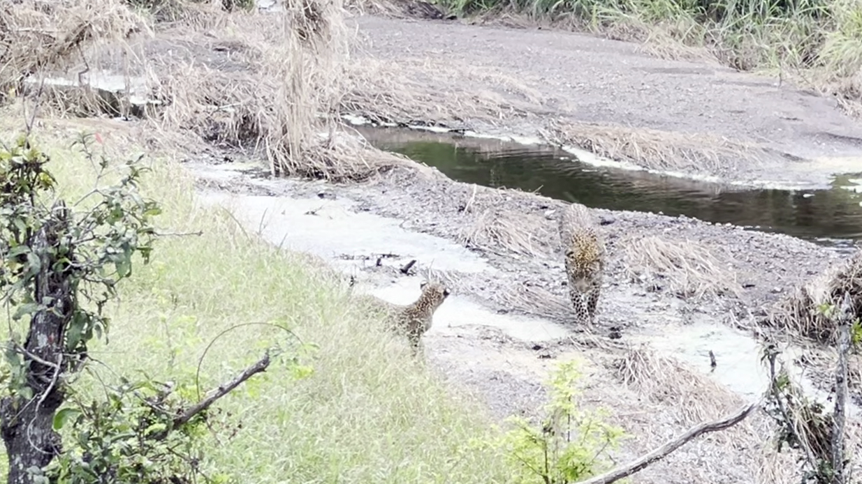 We join Mark and Olha as they marvel at the sight before them. A mother leopard and her cub are bonding on the side of a stream.