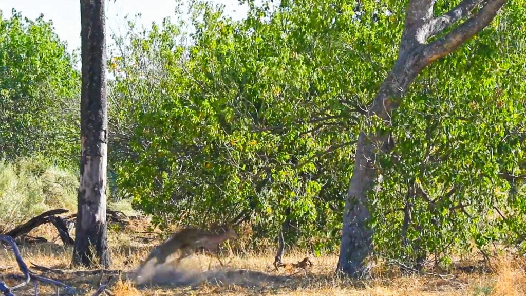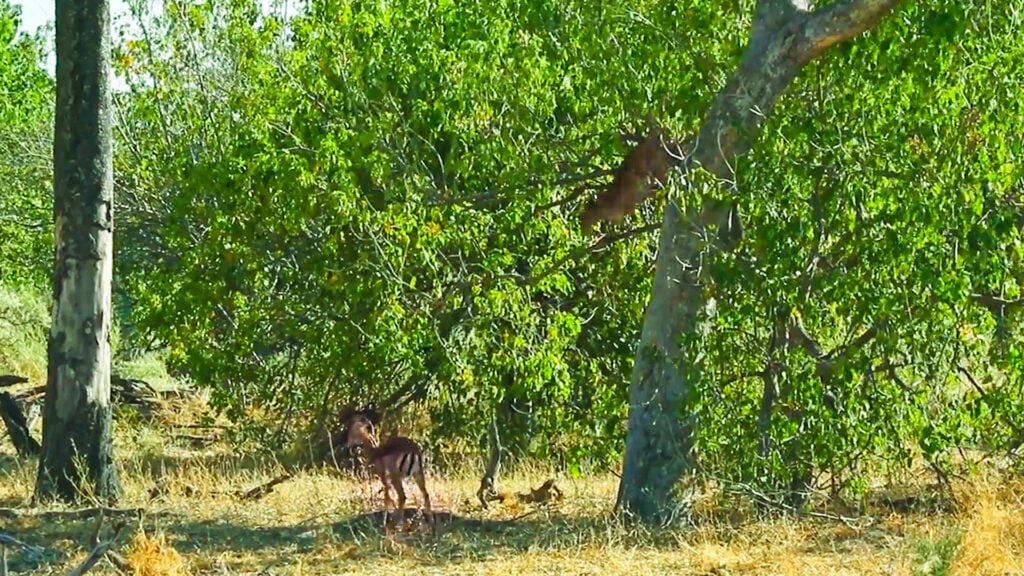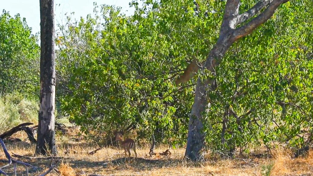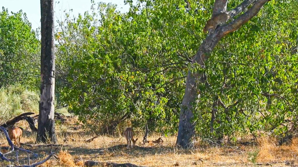 Johan and the other onlookers barely had time to blink. The leopard had dropped from the tree with pinpoint accuracy, landing squarely on an impala’s back!