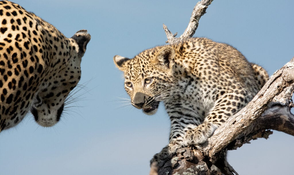 Despite this, there’s only so much time and energy they could waste on these two cats, and after only a few tense minutes they decided to move onto other things, leaving the leopard and her cub safely in the tree.
