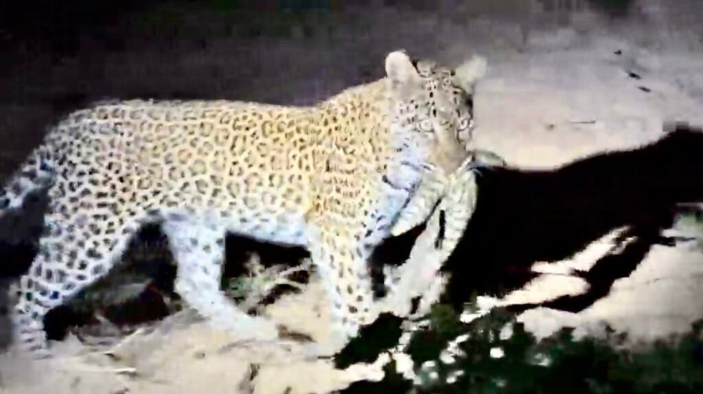 After delivering the final blow, the leopard paused for a moment, then gently picked up its prize in its mouth and disappeared into the darkness. It was a short and silent hunt, perfectly executed.