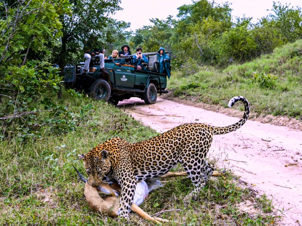 This was a magnificent display of one of nature’s most feared hunters. The leopard remained close to the viewers and they watched from open back vehicles, no doubt just a little fearful with the predator so close!