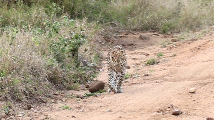 When the camera pans back to the leopard, we see she has abandoned her attempt. Curiously, we then see her vocalising in the distinctive coughing way of leopards.