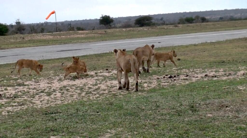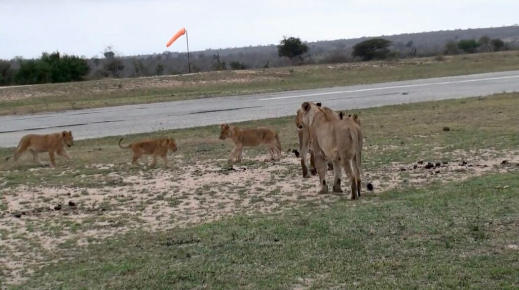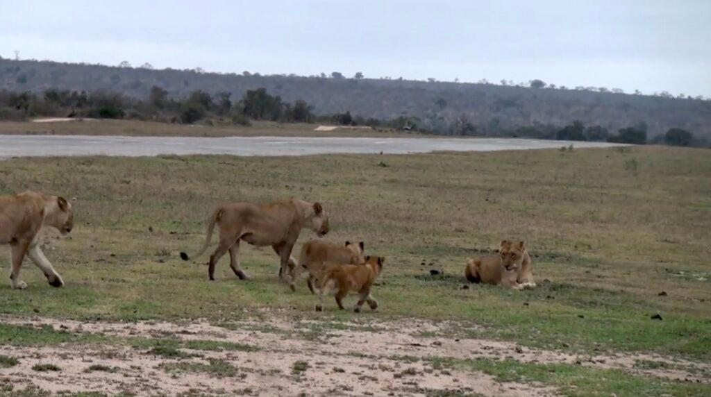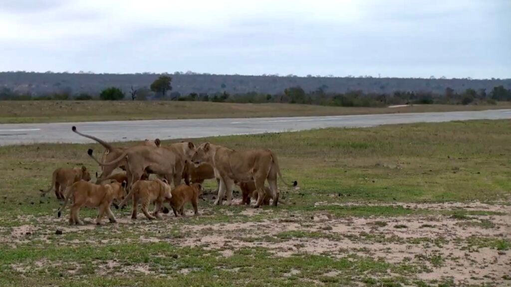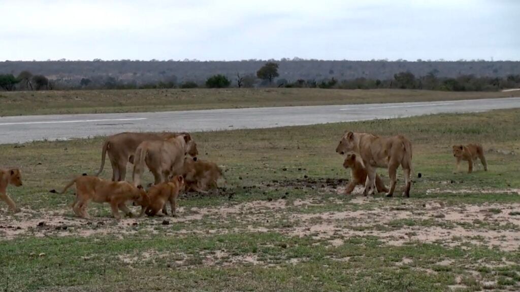 With tails swishing and paws padding across the tarmac, the four lionesses and nine cubs looked content and carefree. The little ones, in particular, were bursting with energy, pouncing, wrestling, and tumbling over one another like playful kittens.