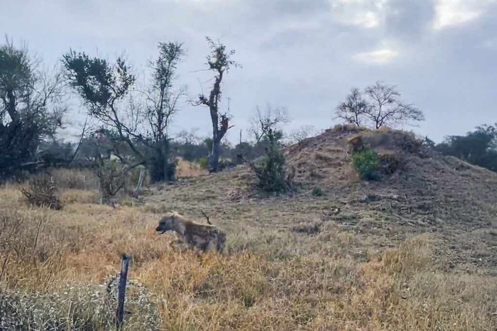 What he didn’t have in his favour, however, was the hyena’s sudden awareness of impending danger, and resultant flight response.