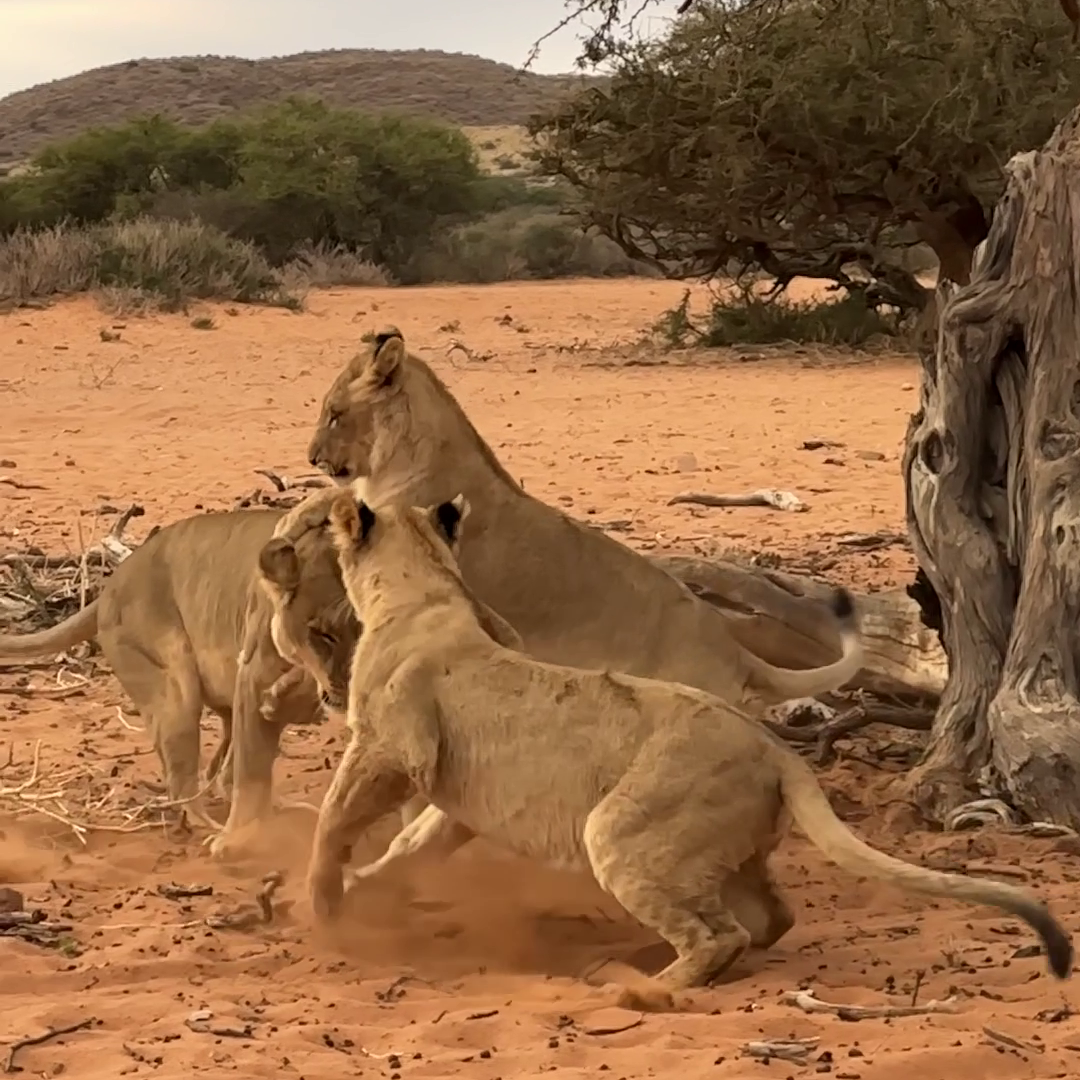 It goes without saying that learning to hunt is one of the most important skills a young lion must learn. To them, if it moves, it is worth stalking… even if that means tackling mom.