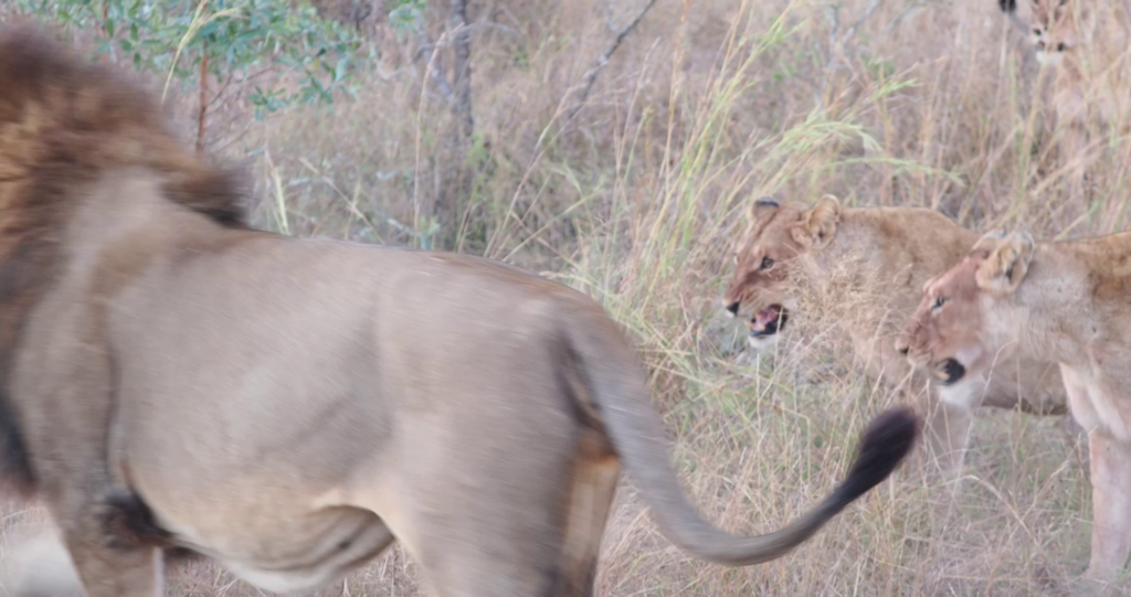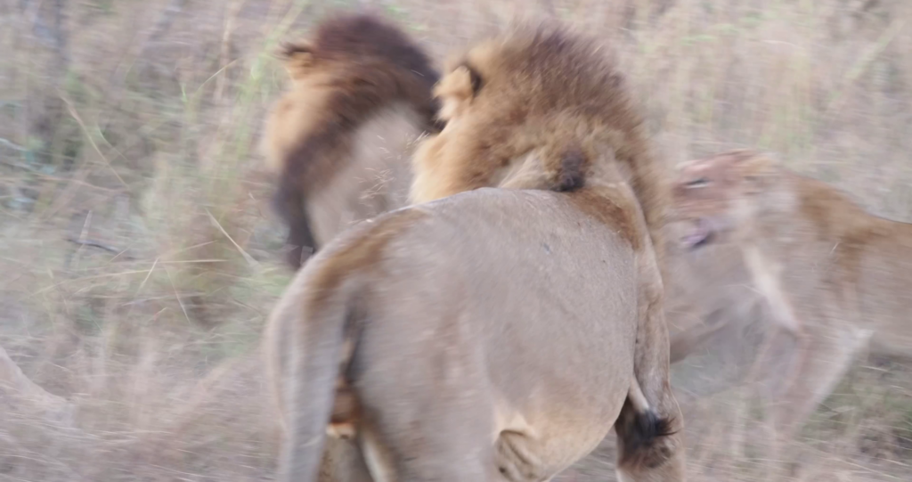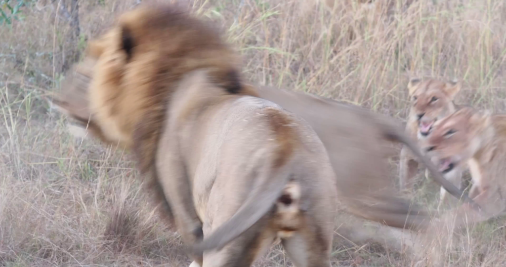 There’s a flurry of movement and flying fur as the lionesses band together to repel the males’ advances. When males attempt to assert their dominance over prides of females, the lionesses don’t automatically accept them.